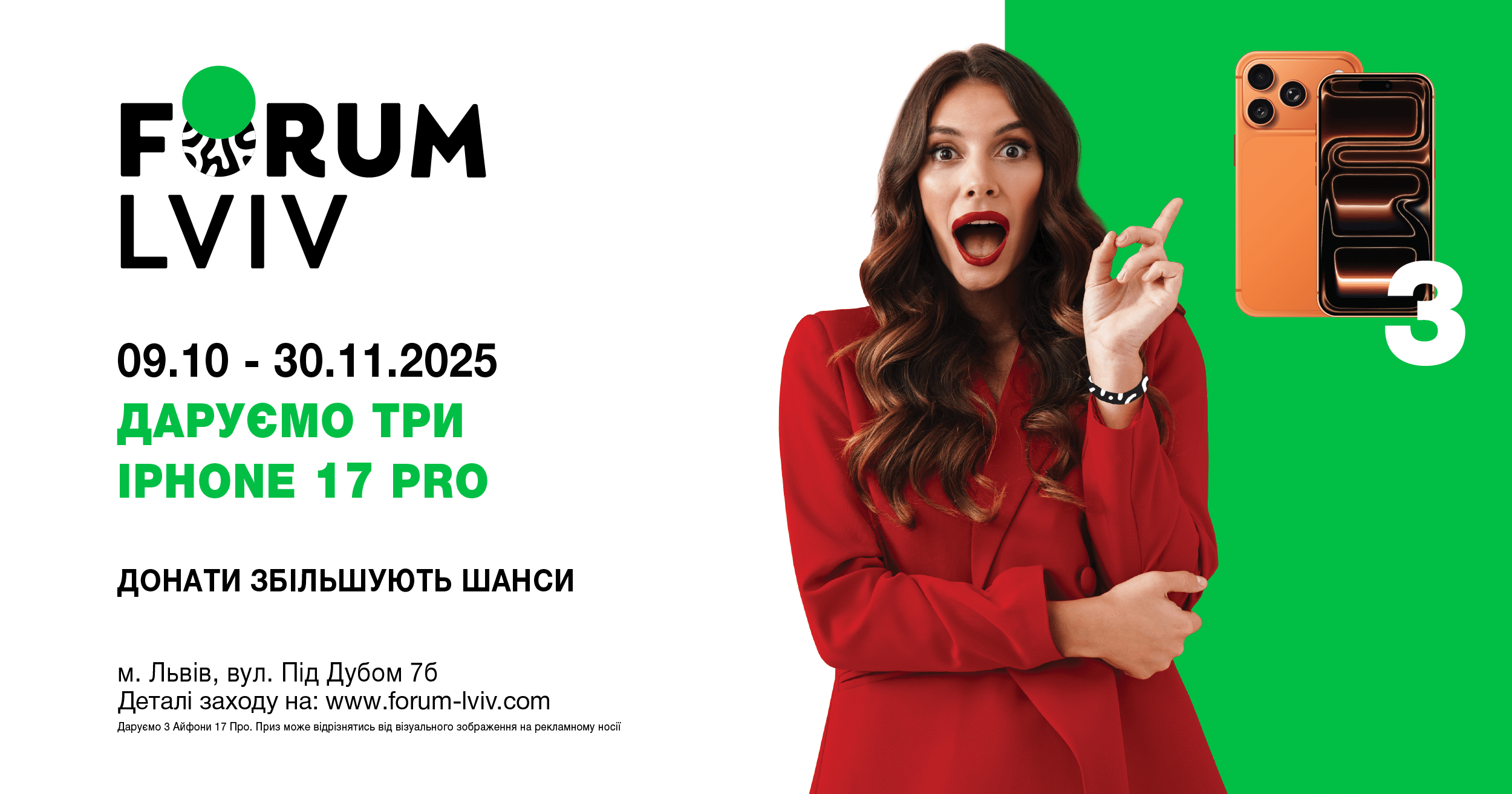 Готові до осіннього сюрпризу від Forum Lviv? Даруємо три iPhone 17 Pro. 😍